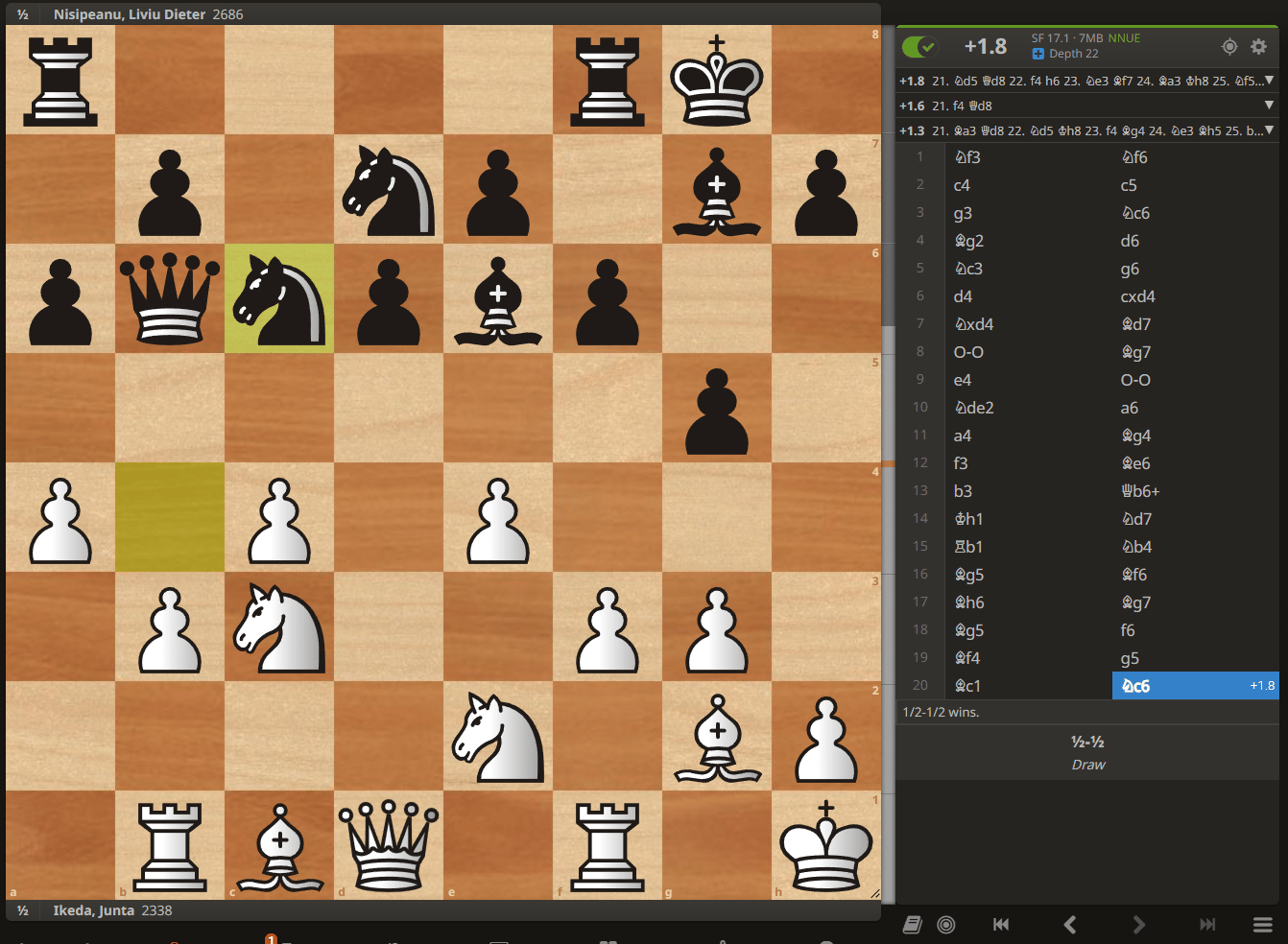 私もFIDEレート2460に到達してから、守りに入りました。そこまで連れてきてくれたダイナミックな指し方を追いやり、数年かけて2350まで落ちてしまいました。